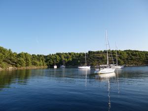 Baia disabitata di luka Tiha. Ancoraggio su 7-12 metri. L'ancora è tenuta in parti uguali non buone. Dondolare sull'amo o utilizzare le coste. Alcuni campi boe intorno con costi.