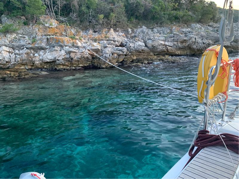 Der Ankergrund besteht aus Sand, Matsch und Seegras. Der Anker hält mäßig.