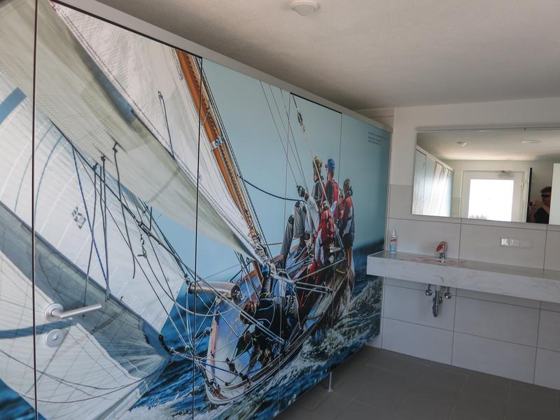 Der Sanitärbereich der Bootswerft Wilhelm Wagner in Bodman wurde 2020 komplett renoviert ist modern gestaltet.