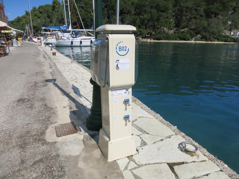 Karte um 12 Euro für Wasser u Strom ist in der Bar Center am Hauptplatz erhältlich. Achtung, wenn die Kaimauer Orange o rot markiert ist, ist festmachen zw 10 und 17 Uhr nicht erlaubt. Ausflugsboote landen.
