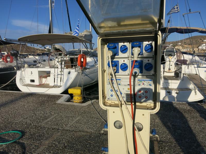 Strom und Wasser gibt es gegen Bezahlung bei der Reiseagentur Acteon. 300 Liter Wasser koten 5 €, 600 l 10€ und 1.000 Wasser schlagen mit 20 € zu buche. Strom ist jeweils inklusive.