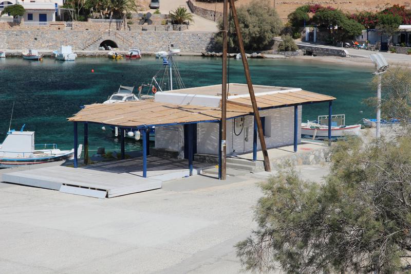 man braucht einen langen Schlauch um Wasser von dem kleinen Häuschen auf seine Yacht zu transportieren.