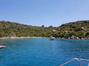 The bottom consists of seaweed and sand and rock. The anchor holds moderate.