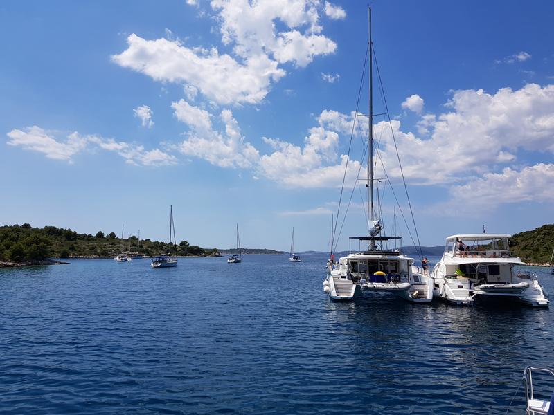 Schon am frühen Nachmittag viele Yachten vor Anker.Einflugschneise Flughafen Split