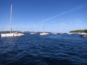 South and southeast of the buoy field, you can anchor at 12-18 meters in calm weather, provided you have a suitably long chain. However, if a southerly wind is blowing, you must raise anchor and leave the area.