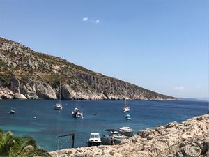 Quite a restless and only slightly sheltered bay, which can be used for a swim stop in calm weather.