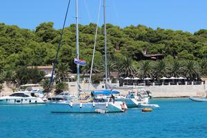 Vinogradišće Bay is very popular and usually crowded in the season. Clear water, good shelter and good restaurants make it so popular. The safest place to anchor is off the eastern or western shore with a shore line.