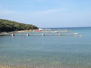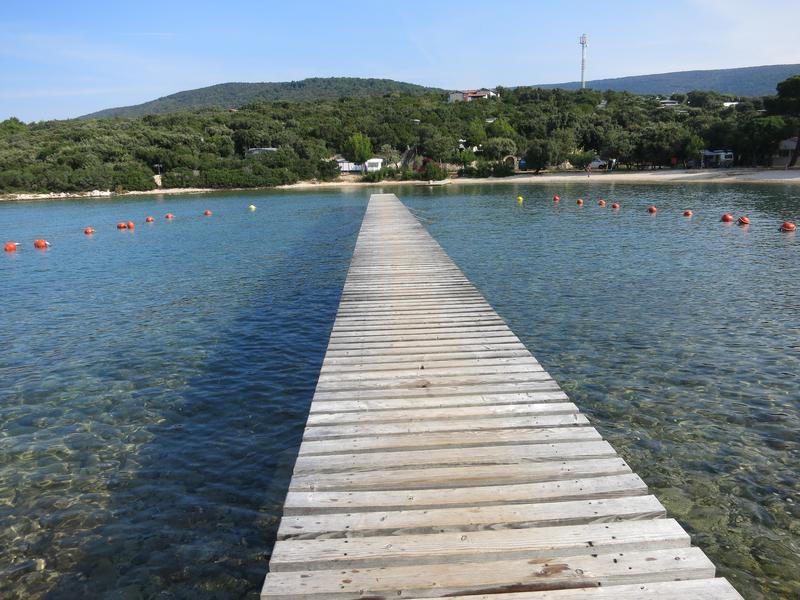The jetties belong to the camping ground. The water is only 0.5 - 1.5 m deep. You berth on buoys with bowline. Sanitary facilities as well as a small shop are available.