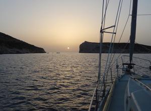 Anchorage in Kalotaritissa on the island Donousa, Cyclades, Greece