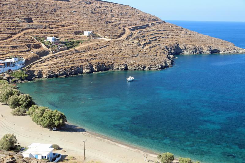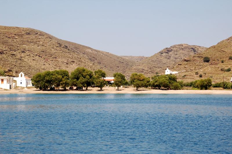 Drop the anchor on 6-8 meters over sand and seaweed. The bay offers good shelter from the Meltemi though some swell comes inside. On strong Meltemi it is recommended to bring a long line ashore to the north side. Two Taverns are open during the season.