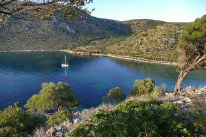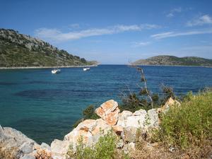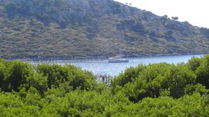 Sehr ruhiger Ankerplatz. hier ankert man am besten auf 4-5m Wassertiefe. Genug Platz zum schwojen ist für mehrere Boote vorhanden. Insel unbewohnt außer ein paar Ziegen trift man nur selten einen Fischer an. Die Bucht bietet guten geschützt und ist eine gute Alternative zu der doch oft sehr vollen Nordseite. Selbst das Handy stört hier nicht die ruhige Idylle (meist keim Empfang).