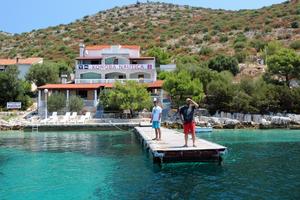 Steg kostenlos für Gäste, Wasser und Strom nur gegen Gebühr jeweils 10 Euro. Gleich beim Anlegen wird nach dem Abendessen gefragt, es gibt nur Fisch und Meeresfrüchte, Fleisch möchte man keines zubereiten. Das Essen ist super, dafür auch die Preise eher hoch. Zweimal Fisch mit Salat, flasche Wein, Wasser, zwei Süssgetränke und zwei Kindermenüs 1450 Kuna, fast schon übertrieben.