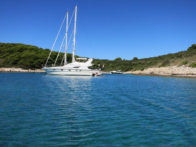 A seconda della situazione del vento, nella baia di Taršće ci sono diverse possibilità di ancoraggio. Potete ancorare liberamente a circa 10-15 metri al centro della baia. In alternativa, è possibile ancorare sulla riva orientale o occidentale con un ormeggio. La punta settentrionale della baia è la più calma. Qui è necessario ormeggiare con cime da terra. Tuttavia, una barca da escursione occupa lo spazio per una lunghezza di 20 metri. Un cartello lo indica.