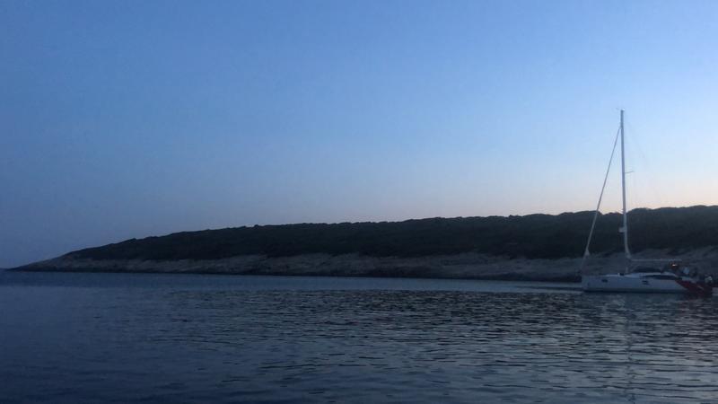 Large bay, quite nice, but also very popular. We spent the night with another 40+ boats. Little wind-protection from any direction. Our anchor held well.