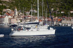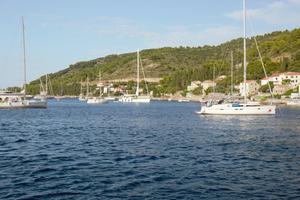 The harbour as well as the buoys are usually full by early afternoon in the season . Boats can then anchor at some distance from the harbour at 10-20 metres above seaweed. As it is very deep here, a lot of chain is needed so that the anchor can actually hold. When there is a strong wind, extra attention needs to be paid to how other yachts are swaying at anchor.