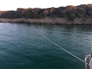 Traumhaft schöne Bucht aber etwas flach. Nur die äußeren beiden Bojen sind für Segelboote geeignet. ca. 3m Wassertiefe bei einer Tide von ca 30cm Für große Yachten wird es eng. Am besten mit einer Landleine im tiefen Bereich halten, dann unkritisch