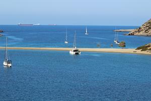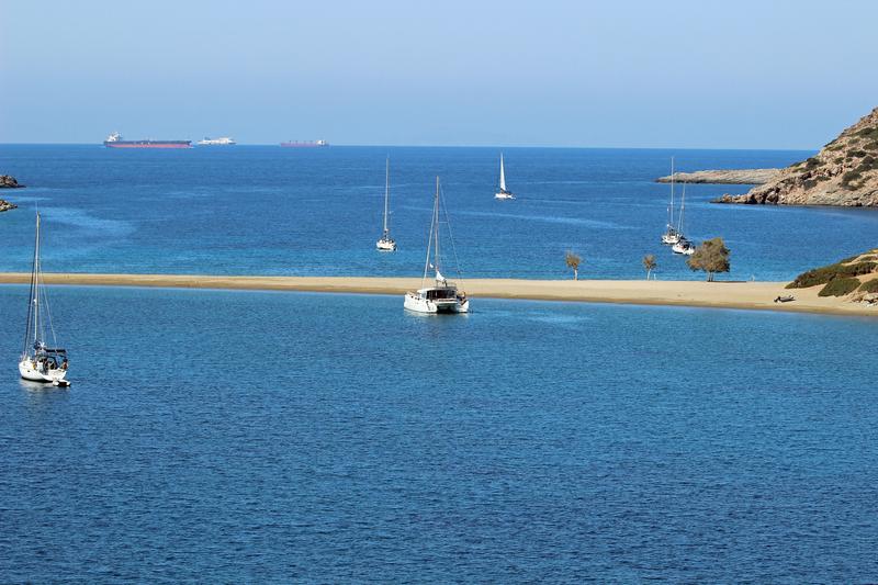 Sehr beliebter und stark frequentierter Ankerplatz mit Straumstrand. Guter Schutz vor Meltemi.